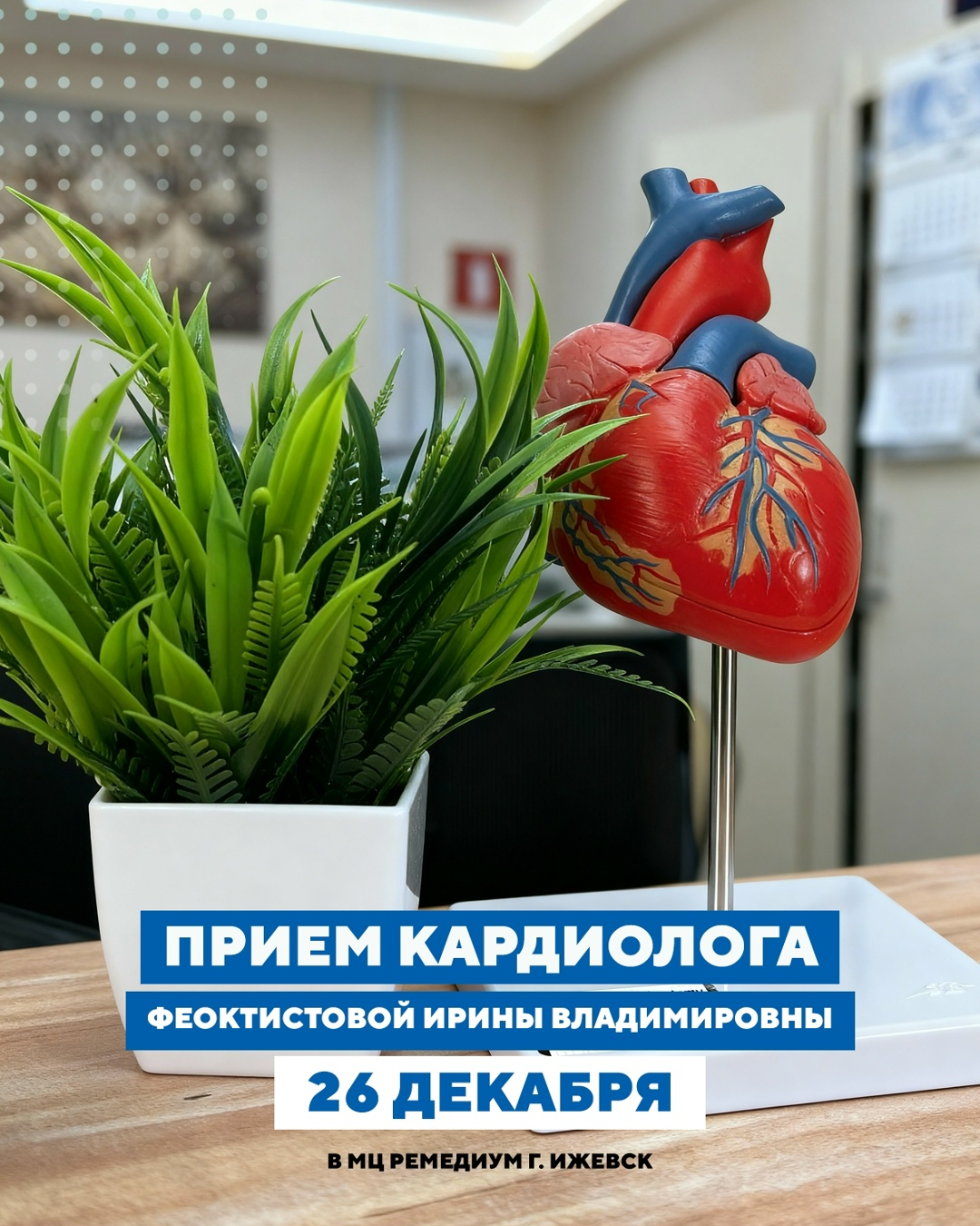 Доступна запись на 26 декабря к кардиологу высшей категории - Феоктистовой Ирине Владимировне