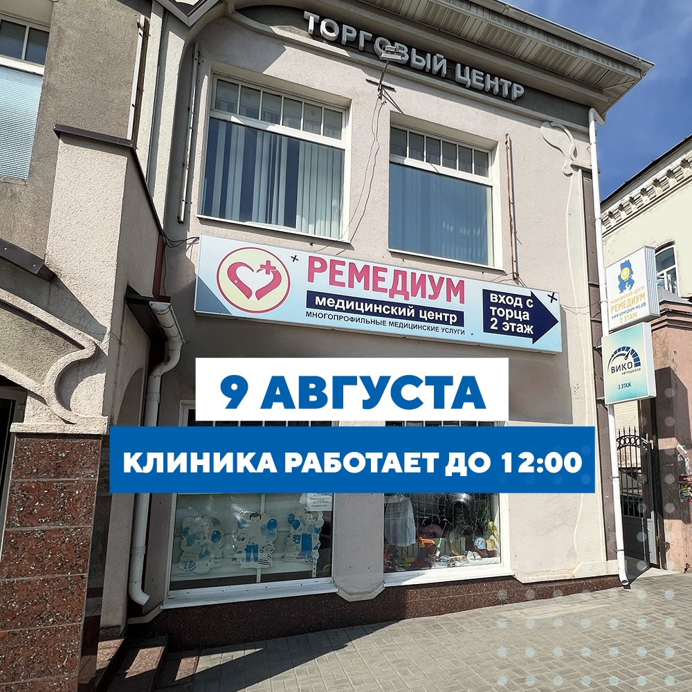 Важная информация: 9 августа (суббота) по техническим причинам клиника будет работать с 08:00 до 12:00!